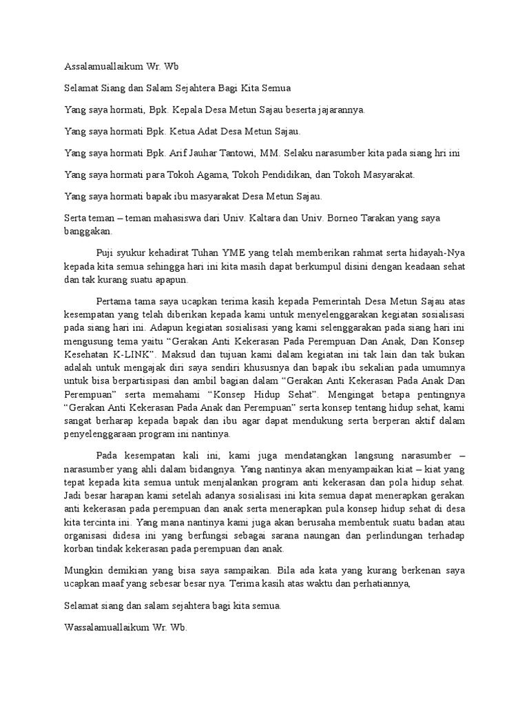 Contoh Pidato Acara Perpisahan KKN di Kel. Dan yang terhormat seluruh bapak ibu tokoh masyarakat karang taruna. Contoh Pidato Sambutan Kepala Desa.