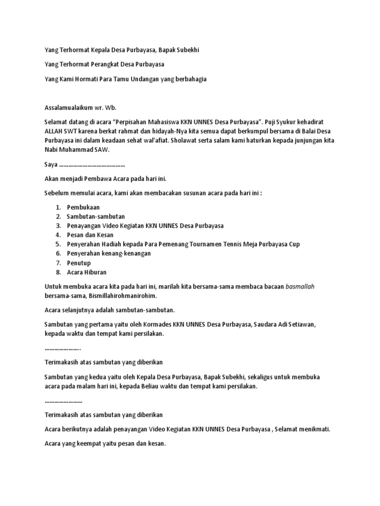 Kata Sambutan Perpisahan Kkn Kordes Pdf