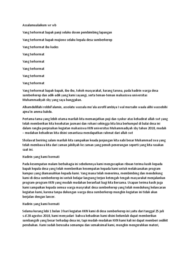 Contoh Sambutan Perpisahan Kkn Pdfcoffee Com